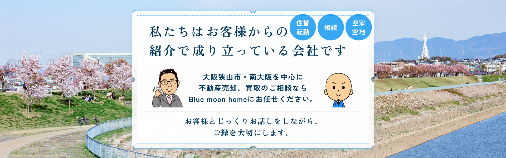 - 大阪狭山市・南大阪エリアに長年根差して培った市場知識と豊富な実績を活かし、地域特有の事情や売却ニーズに柔軟に対応いたします。大手にはない「地元ならではの強み」を活かし、売却のタイミングや価格設定を的確にご提案。地元の買主ネットワークを活かして、より早く・より良い条件での売却を実現します。